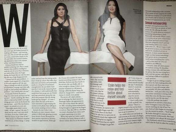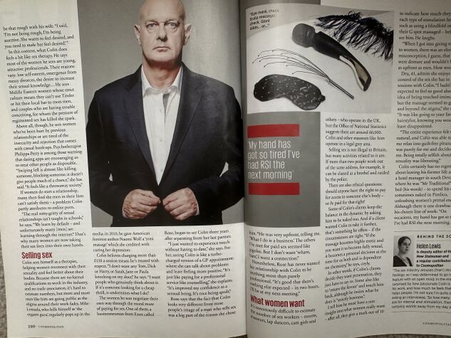One year after Colin began seeing female clients in 2014 the media heard about the success Colin was having in helping women overcome Anorgasmia ( difficulty to orgasm ) and in 2015 Colin was interviewed by the highly respected journalist Helen Lewis for Cosmopolitan Magazine. This six page article was published in Cosmopolitan in November 2015.